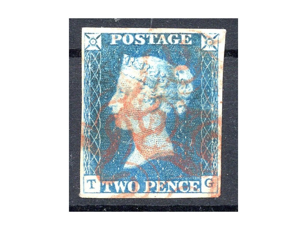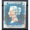 VELKÁ BRITÁNIE 1840, 2 p. modrá „Královna Viktorie“ (Unif. č. 2), použitá.