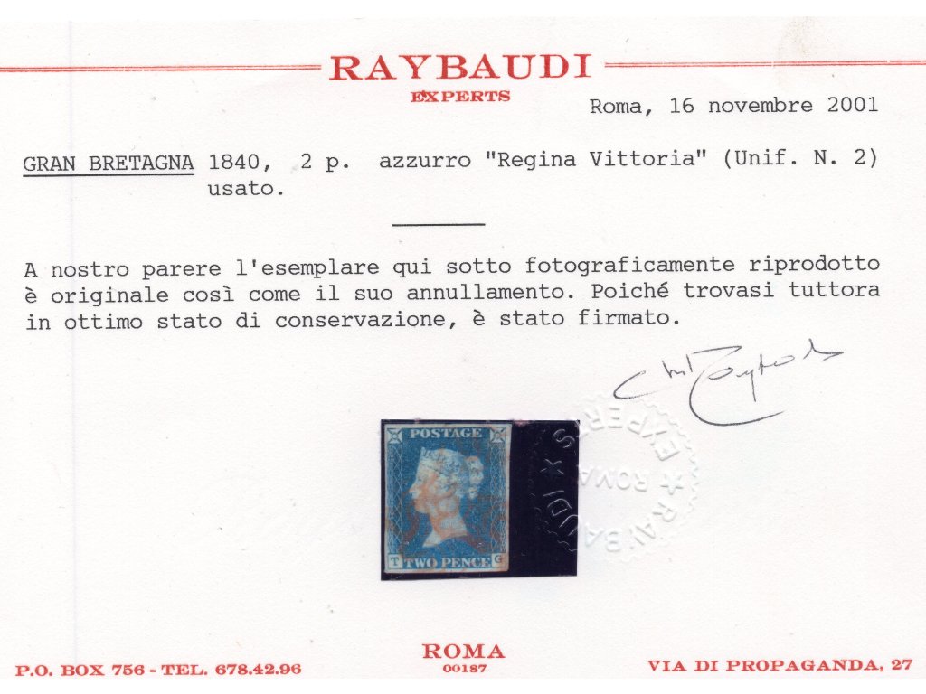 1840 2 Penny Blue Mi.Nr. 2 s atestem.