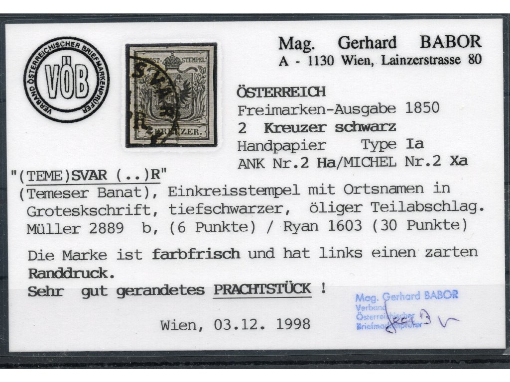 1850 Rakousko Nr.2X Typ Ia (TEMESVAR) atest