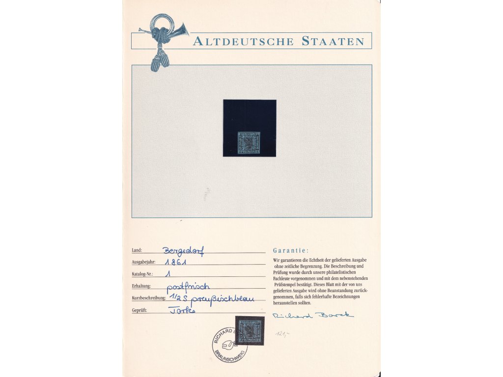 Bergedorf Mi. 1 ** S certifikátem od firmy Borek.