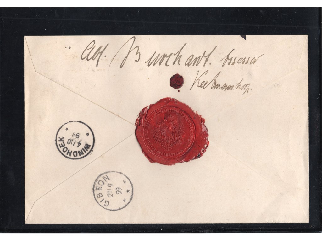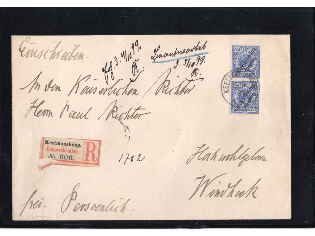DSWA 1899 – doporučený dopis Keetmanshoop → Windhoek.