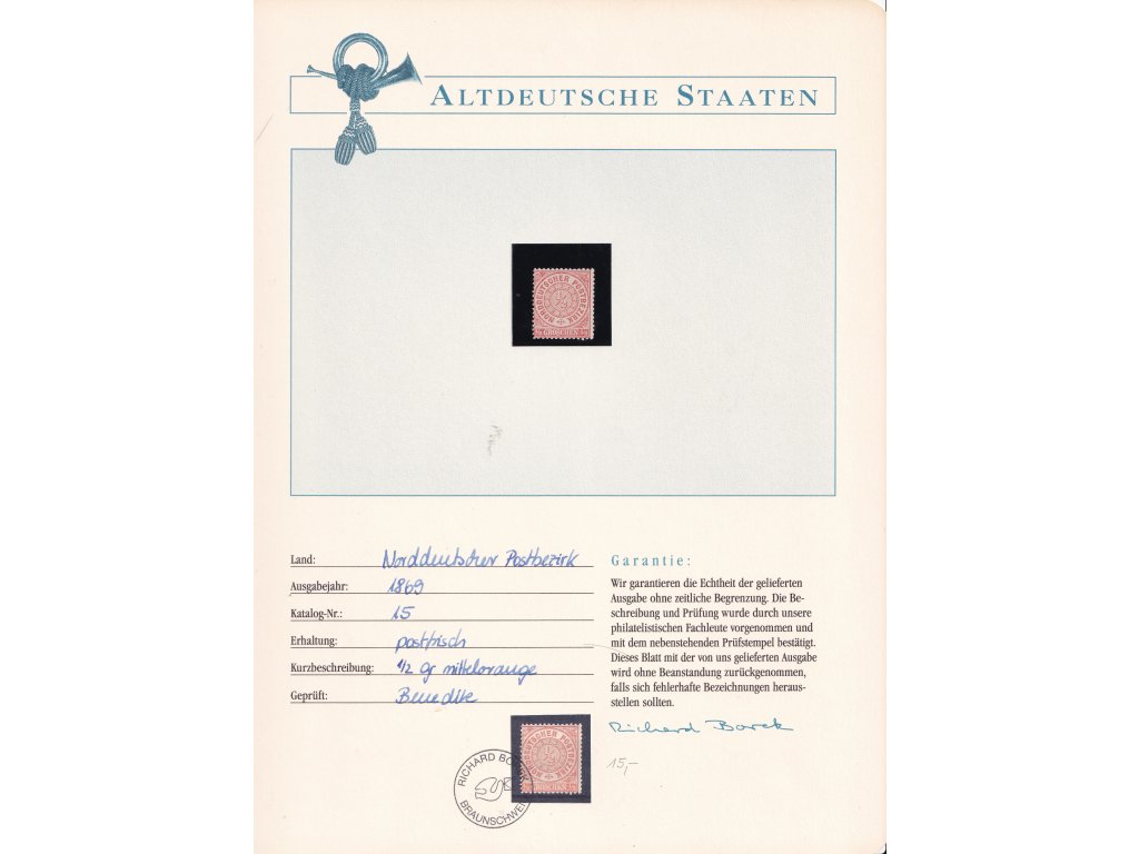 Norddeutscher Postbezirk Nr.15** S certifikátem od firmy Borek.