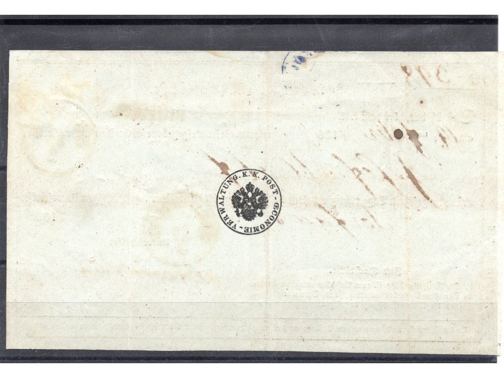 1867 dvojjazyčný zpáteční recepis vyfr. zn. V. emise 10Kr, Mi.33, podací BRIXEN, kat. 225€