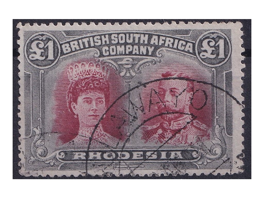 Rhodesia 1910 £1 Red & Black SG179 zoubkování 15.